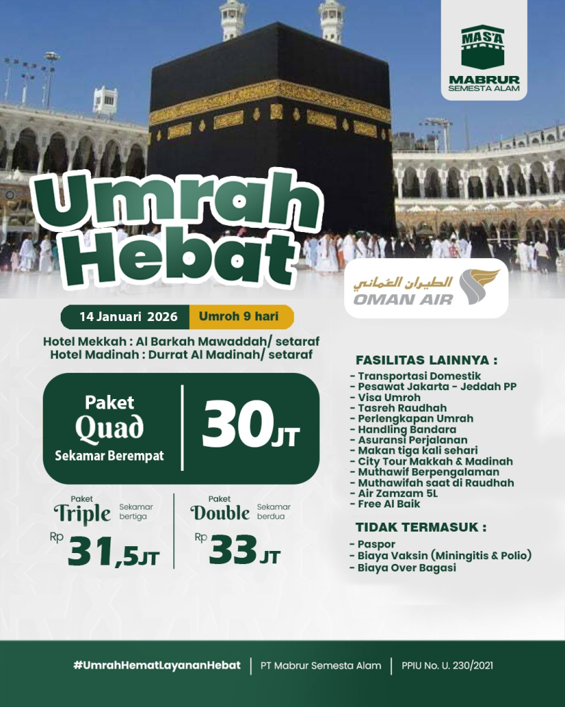 Kami menyediakan paket perjalanan Umrah yang Hemat dengan Fasilitas yang Hebat
